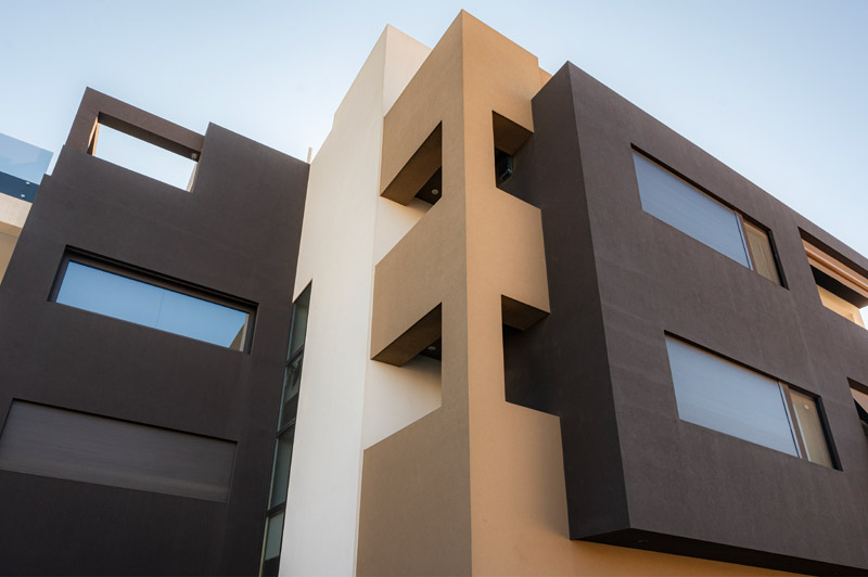Εφαρμογή συστήματος εξωτερικής θερμομόνωσης σε νέο κτίριο με τελικό ακρυλικό επίχρισμα.