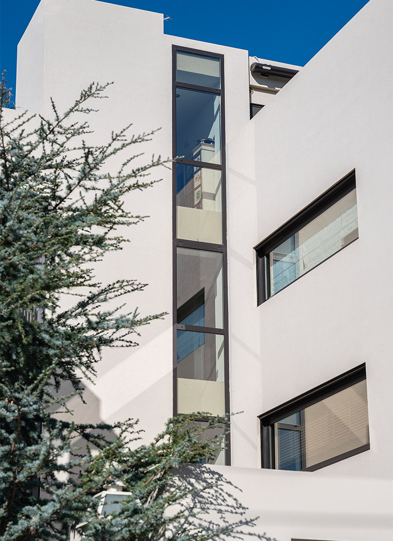 Εφαρμογή συστήματος εξωτερικής θερμομόνωσης σε νέο κτίριο με τελικό ακρυλικό επίχρισμα.